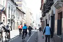 The Ciclopaseo is a project created by Biciaccion Foundation. It was administered by this organization from 2003 until 2007, from there it was organized by the local organization Ciclopolis until 2017. Nowadays the local traffic law enforcement organisation (Agencia Metropolitana de Tránsito by the Spanish name) is administering the project. A route of 30 km running from the North to South of the city is closed to traffic every Sunday from 8 am until 2 pm to give preference to cyclists and pedestrians. The project is run in cooperation with the Municipality and features diverse locations of the city from Carolina Park, Ejido Park the Historic Center of Quito, Avenue Rio Amazonas, and The Panecillo.