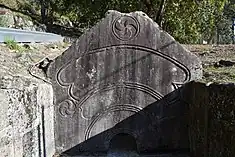 A decorated stone with swastika-like geometric figures, at the baths of Citânia de Briteiros.