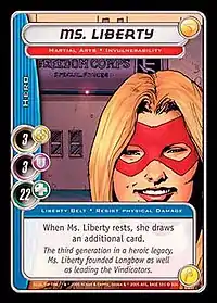 The "Ms. Liberty" card from the City of Heroes Collectible Card Game