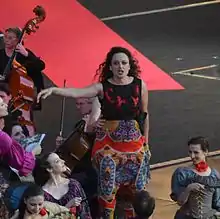 Clémentine Margaine studied at the Paris Conservatoire.[1] She then joined the Deutsche Oper, where she sang the leading roles of Carmen, Dalila in Samson et Dalila and Marguerite in Le Damnation de Faust.[1] She has sung the role of Carmen at a number of the world's leading opera houses including the Paris Opera,[2] Opera Australia and the Metropolitan Opera, New York, in 2017, when she won praise for her "vast" range and "subtle art".[3] This was broadcast in the 2018–2019 Met-HD series on 2-Feb-2019.