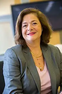 From March 13, 2017 to 2018 she also was in charge of sustainable development and mobility for the Michelin group.[10] In this role, she supervises the organization of Movin'On, a global conference on sustainable mobility which picks up the baton from the Michelin Challenge Bibendum event.