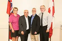 Mayor Foster (centre-right) with Wendy Partner (left) and Ron Hooper (right).