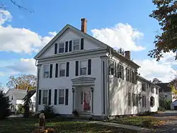 The Clarke–Glover Farmhouse is located in a predominantly residential area west of downtown Southbridge, at the southwest corner of South and High Street, on a large level lot fringed by iron fencing. It is a 2+12-story wood-frame structure, with a front-facing gabled roof and clapboarded exterior. The building corners have paneled pilasters rising to a full entablature and fully pedimented gable. The main facade is three bays wide, with the main entrance in the right bay. It is recessed in a paneled opening, which is framed by pilasters and topped by a peaked gable. Within the recess, the door, a modern replacement, is flanked by sidelight windows. A two-story ell extends to the rear.[2]