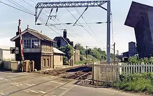 The signal box was redundant by 1986, following the re-signaling of the mainline, electrification, and the replacement of the old level crossing barriers with new remote-controlled barriers.[8]