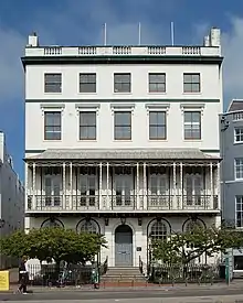 This is next to Marlborough House and Steine House on the west side of Old Steine, and is taller and set further forward than both. It was built in the early 19th century,[14] but Clayton & Black's work altered its appearance extensively. More changes were made in the early 20th century. The building now has "a more Regency character" than it did when built.[14][80]