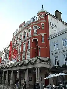 Opened in 1807, this has been Brighton's main theatre for more than 200 years. A major remodelling in 1866 was followed by Clayton & Black's work, which gave the building its present appearance: they extended and enclosed the conservatory-style façade, added octagonal corner turrets topped with domes, knocked through to the adjacent house and rebuilt it as a box office and foyer, added Corinthian columns and encased the building in bright red brick. The overall appearance is now Jacobean.[9][16][37][81] Originally listed at Grade II,[82] it was upgraded to Grade II* status in May 2012.[81]