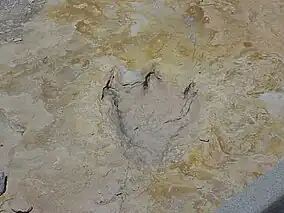 ![]() Dinosaur footprint from the fossil trackway at Clayton Lake State Park | |