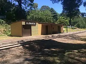 Trains rarely stop here, except by prior arrangement, often for groups travelling to the Paradise Hotel (behind the station). Clematis contains a small loop siding with a dead end spur, which are staff operated.