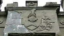 The estate also includes a large gateway, built in 1815 in the medieval style.[5] In addition, D'Arcy had several standing stones erected on his property. Four remain along the winding path between the gateway and the house. One of them might be a prehistoric worked stone, originating from elsewhere.[3][6]
