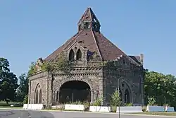 Clifton Park Valve House, also known as the Lake Clifton Gate House or Lake Clifton Valve House, is a historic building located in a northeast area known as Clifton Park of Baltimore, Maryland. It is a massive octagonal stone gatehouse featuring large Romanesque archways that alternate with Gothic style windows that once contained stained glass. It was constructed in 1887 by the Baltimore City Water Department. It also features a turret, atop an intricate tile roof supported by a complicated system of iron trusses.[2]