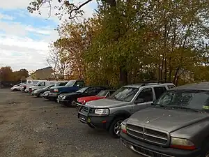 The right-of-way north of the former Clifton station in October 2014, now the site of a parking lot for a business.