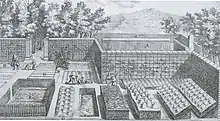 Parisian market gardens in the 1800s used 18-inch diameter bell-shaped glass jars (cloches) to protect plants in cold weather. They were used to protect everything from young seedlings to mature plants. Notched wooden sticks were used to prop up and vent the jars on sunny days, and were placed back down on the soil before nightfall.[2]