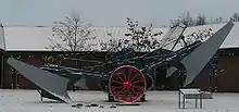 Outside the actual museum village land, north of Höltinghauser Straße, a large moor plough displayed. More information about the individual exhibits is available in an interactive location plan.[9]