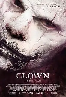 Clown is a 2014 American supernatural horror film directed by Jon Watts in his feature directorial debut, produced by Mac Cappuccino, Eli Roth, and Cody Ryder, and written by Watts and Christopher Ford. It stars Eli Roth, Laura Allen, Andy Powers, and Peter Stormare. Visual effects for the clown monster were done by Jagdeep Khoza, Alterian, Inc., and Tony Gardner. Principal photography began in November 2012, in Ottawa. The film was released in Italy on November 13, 2014,[5] in the United Kingdom on March 2, 2015, and in the United States on June 17, 2016, by Dimension Films.[6] The film received mixed reviews from critics.