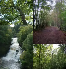The Clyde Valley Woodlands National Nature Reserve (NNR) comprises six separate woodland sites in the Clyde Valley region of South Lanarkshire, Scotland. These six sites are located along a 12 km section of the River Clyde and its tributaries, and lie close to built-up areas such as Hamilton and Lanark on the southern outskirts of Greater Glasgow. The sites can be easily accessed by about two million people living in the surrounding urban areas, making the reserve unique amongst Scotland's NNRs, most of which tend to be located in more remote areas.[4] The six sites are:[5]