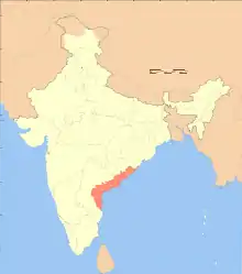 The coastline of Andhra Pradesh is located on the southeastern coast of the Indian Peninsula in the Bay of Bengal and is part of the Northern Circars. With a length of 975 km (606 mi), it has the third longest coastline in India after Gujarat and Tamil Nadu. The coastal corridor boasts several ports, harbors, vast stretches of sandy beaches, wildlife and bird sanctuaries, as well as fresh water lakes and estuaries.[1][2]