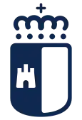 • El escudo de la Junta de Comunidades de Castilla-La Mancha es partido. En el primer cuartel, en campo de gules un castillo de oro almenado, aclarado de azur y mazonado de sable. El segundo cuartel, campo de argento plata. Al timbre, corona real cerrada, que es un círculo de oro engastado de piedras preciosas, compuesto de ocho florones, de hojas de acanto, visibles cinco, interpolado de perlas y de cuyas hojas salen sendas diademas sumadas de perlas, que convergen en un mundo de azur o azul, con el semimeridiano y el ecuador de oro sumado de cruz de oro. La corona forrada de gules o rojo.