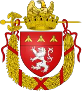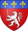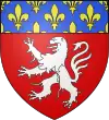 | Blazon | Gules a lion rampant Azure. Upon a chief of Azure three fleur-de-lys Or. |