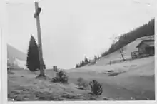On the Bonnevaux territory, by the roadside about 5600 m below the pass, is the Chapelle Notre-Dame-des-Sept-Douleurs de Bonnevaux|or Our Lady of Sorrows registered in the cultural heritage's general inventory of the Rhône-Alpes region. Erected in 1844 by Rev. Girod, pastor of Bonnevaux, it was partially restored several times and fully restored in 1982. The bell of 1910 is called "the Virgin." .[2] The road was created in 1917 and redone in 1940; it has since been widened and tarred. Until 1964, the pass served as pasture for cows of the Abondance breed going to or returning from higher pastures. The large trough served not only for watering the cows but also for cooling the engines of cars that overheated going up the steep slopes. The road was plowed in winter on the Le Biot in 1964 and on the two sides in 1966.