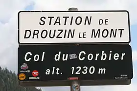 Col du Corbier is a French Alpine pass located in Haute-Savoie department in the Rhône-Alpes region in southeastern France between the towns of Le Biot and Bonnevaux (Haute-Savoie). Col du Corbier is also the first name of the ski resort located on this site from 1966 to 1975, before being renamed Drouzin-le-Mont.