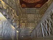 Upper body's side sections have the founder's heraldic decoration and two kings of arms placed at height of the central shield.