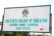 - 1 2 "About Us – Edo State College of Education, Igueben Campus". Retrieved 18 June 2021.