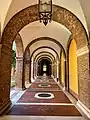 During the second world war, great efforts were made to ensure no national factions developed amongst the students. This is where the monastic practice of dividing the larger community into smaller "deaneries" became so very important even as they are today. No one language group would predominate even as the hope was that students would also learn other languages and about other cultures.[13] Nonetheless, students would face difficulties as their home monasteries were closed, some were drafted into the war efforts of their countries, and tensions would rise. One visiting monk, Fr. Hermann Keller from the Archabbey of Beuron, was also found to be working for the German Gestapo but was transferred to Paris. Further challenging the students was the sudden death in 1942 of Fr. Anselm Stolz of Gerleve Abbey who had served as an internationally famous monk and professor. Finally, in October 1943, the monastic community of the Archabbey of Monte Cassino, along with their archives and artwork, were transferred to Sant'Anselmo before the final destruction of that monastery.[14]