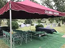 The "park" initially encompassed nearly thirty-eight adjoining acres, with an option to purchase an additional thirty acres.[2] The Columbia Gardens Cemetery has been family operated for four generations. At present it is one of the few cemeteries in the Northern Virginia area offering available burial sites with the option of an upright monument. Other options range from columbarium niches to family mausoleums.