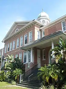 East Columbus Drive travels through a historic area of Tampa, Tampa Heights. Latin food restaurants on East Columbus Drive include Arco-Iris and Brocato's Sandwich Shop. The area is a center of Latin culture in Tampa.[4] The Michigan Avenue grammar school opened in 1907 and became Robert E. Lee Elementary School in 1933.[2][5] and is located at 305 East Columbus Drive between Jefferson Street and Morgan Street. It is Hillsborough County, Florida's oldest brick school building.[2][6] The Villa Madonna School was established at 315 West Columbus Drive.[7][8]