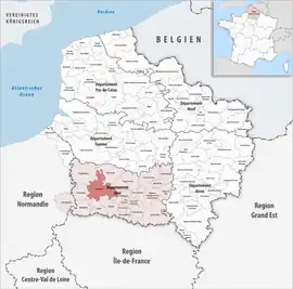 The Communauté d'agglomération du Beauvaisis is a communauté d'agglomération located in the Oise department and in the Hauts-de-France region of France. Its seat is in the town Beauvais. It was created on 1 January 2017 by merger of the former Communauté d'agglomération du Beauvaisis with the Communauté de communes rurales du Beauvaisis,[1] and was expanded with 9 communes from the Communauté de communes de l'Oise Picarde in January 2018.[2] Its area is 539.0 km2. Its population was 103,934 in 2020, of which 56,889 in Beauvais proper.[3]
