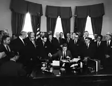 - ↑ "Bill signing, H.R. 11040 Public Law 87-624, Communications Satellite Act of 1962, 9:45AM". John F. Kennedy Presidential Library and Museum.