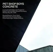 Concrete is a live album by the British band Pet Shop Boys. It was released on 23 October 2006. Due to be called Concert, on 20 September 2006, Pet Shop Boys announced that the album was going to be called Concrete, which was the title that they originally wanted for the album. It is the first live concert to be released by the band on Audio CD.