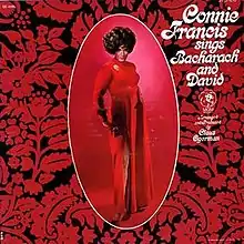 Released in November 1968, Connie Francis sings Bacharach & David is the first album by Francis on MGM Records released exclusively in stereo. All previous albums had either been released in both stereo and mono or exclusively in mono.[6] In 1979 Polydor Records released a two-record set of this album together with the Connie Francis Sings the Songs of Les Reed album.[7]
