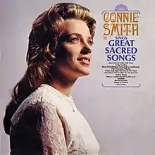 Connie Smith launched her career in 1964 with her debut single called "Once a Day", which topped the American country songs chart for eight weeks.[2] With three commercially-successful country music albums, Smith went into RCA Studio B in February 1966 to record her first album of gospel songs. The album was named Connie Smith Sings Great Sacred Songs because Smith wanted to avoid recording songs with gospel-style piano. "The way it turned out was country songs with sacred words and that's why it's called 'Great Sacred Songs'," she told author Colin Escott.[3] Later in her career, Smith would become more religious and record more gospel material.[2] Reflecting on her first gospel project, Smith said, "At that point I'd say I believed in God, but I was not a Christian."[3]