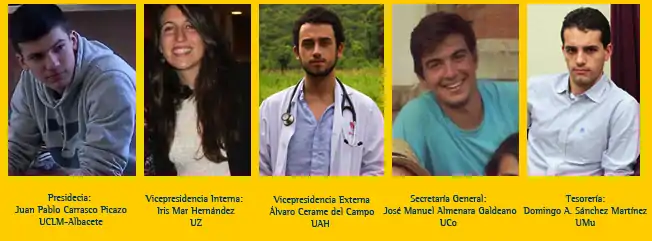 This is the visible face of the organization, which entrusts with the expected tasks during the interassembly period, the events’ assistance, the media's statements, etc. It is chosen by democratic and secret vote of the representatives. It is conformed by Presidency, Vice-Presidency of Internal Tasks, Vice-Presidency of External Tasks, General Secretary and Treasury. The post are currently held by: