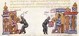 John the Orphanotrophos sends Phagitzes with relics to Constantine Dalassenos, miniature from the Madrid Skylitzes