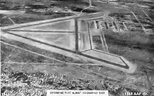 The original airfield was built with three runways in a triangle. Two remain: 17-35 and 5-23. Support facilities were built, of which a 120-foot (37 m) by 80-foot (24 m) hangar remains. 85 buildings, a sewage treatment plant, utilities and a firing range were built. Three buildings were ordnance related.