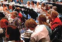 The main and permanent exhibition of the museum, called "Forks in the Road: Food, Wine and the American Table",[50] had displays explaining the origins of cooking through to modern advances, and included a significant portion about the history of American winemaking. The museum's opening art exhibition was called "Active Ingredients", and had new works related to food by eight notable artists.[2] Copia also had an annual exhibit and event called "Canstruction", which began in 2005. The event involved teams of architects, students, and designers creating sculptures from cans of food, which would later be donated to the Napa Valley Food Bank. The first year's donation consisted of 42,000 pounds of canned food.[16][51]