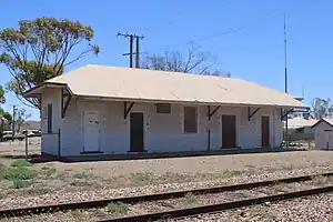 The narrow-gauge railway south of Leigh Creek was under pressure from coal trains, with the coal trains getting heavier as time went on. A solution was needed to help increase capacity for the coal trains, with multiple options being identified for a standard gauge railway. These included upgrading the existing line to Leigh Creek or making a new railway that ran to the west of the Flinders Ranges, bypassing the Pichi Richi Pass. It was eventually chosen to build the new railway, and it opened to Leigh Creek in 1956 and Marree in 1957, with Copley being one of the places where the 2 lines crossed over.[3] From then on, the original narrow-gauge alignment was progressively abandoned, with the Port Augusta to Hawker alignment finally being closed in 1972.[4] As part of the new standard-gauge railway, the station was rebuilt with a brick station building similar to those at Telford and Marree, and a goods platform.