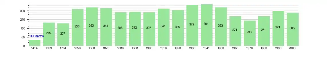 As of 2000, there were 110 private households in the municipality, and an average of 2.6 persons per household.[8] There were 24 households that consist of only one person and 9 households with five or more people. Out of a total of 116 households that answered this question, 20.7% were households made up of just one person and there was 1 adult who lived with their parents. Of the rest of the households, there are 34 married couples without children, 39 married couples with children There were 6 single parents with a child or children. There were 6 households that were made up of unrelated people and 6 households that were made up of some sort of institution or another collective housing.[9]