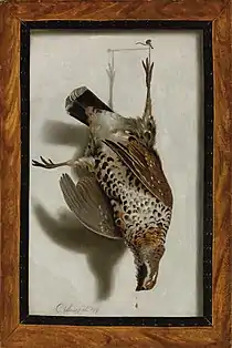 - ↑ Cornelis Biltius, Trompe l’oeil with quails, kingfisher, bird net and whistle and Trompe l’oeil with two quails, bird net and whistle at Sotheby’s