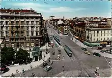 The modern Corso Buenos Aires developed from the "stradone di Loreto", an old road connecting the centre of Milan to Monza.[3] In the 19th century, the road used to be called "Corso Loreto"; one of its prominent features was the Lazaretto, which is also mentioned in Alessandro Manzoni's novel The Betrothed; it was demolished in the late 19th century. Approximately in the same period, the horsecars that served this route were replaced by trams. In 1964 the trams themselves were abolished and the railway dismantled, being replaced by the modern subway line.