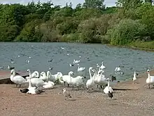 The main feature at this country park are the two large lakes divided by a bridge on the main footpath 'mile road'. The country park has a variety of habitats covering over 100 hectares of land and water, with some areas designated a Site of Special Scientific Interest, protecting the rare and diverse plant and animal species.[1]