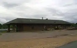 The Cotton Belt Railroad Depot is a historic railroad station at the junction of Main and 1st Streets in downtown Fordyce, Arkansas. The single-story brick building was built c. 1925 by the St. Louis Southwestern Railway, also commonly known as the Cotton Belt Railroad. The building is predominantly Craftsman in its styling, with extended eaves that have elaborately styled brackets.[2]