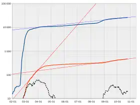 South Korea introduced what was considered one of the largest and best-organised epidemic control programs in the world, along with Singapore, Taiwan, and Vietnam.[11][12][13] Various measures have been taken to mass test the population for the virus, and isolate any infected people as well as trace and quarantine those they had contact with, without any further lockdown.[14][15] The rapid and extensive testing undertaken by South Korea has been judged successful in limiting the spread of the outbreak, without using the drastic measure of locking down entire cities.[14][16][17] Despite these successful measures, however, a significant rise in the number of new infections has occurred beginning in August 2020, with clusters being linked to Protestant churches in the metropolitan Seoul area.[18][19] Another rise began in the third week of November, and Seoul has since entered a third wave of infections.[20] On 24 November, the government raised the social distancing level in Seoul to level 2.[21] On 29 November, the social distancing level in other areas of the country was raised to 1.5.[22] In December, it was raised to level 2.5 in some metropolitan areas and 2 in other areas.[23]