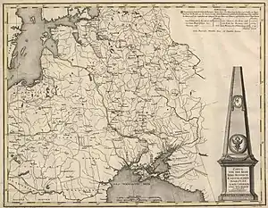 The Crimean journey of Catherine the Great (Russian: Путешествие Екатерины II в Крым), also known as Таврический вояж (Taurida Voyage) at the time, was a six-month (January 2, 1787 – July 11, 1787) inspection trip of Catherine II of Russia to the newly acquired lands of New Russia and Crimea, gained as a result of the victorious wars against the Ottoman Empire (1735–39 and 1768–74) and peace treaties with the Cossack Hetmanate followed by the forced liquidation of the free Zaporozhian Sich.