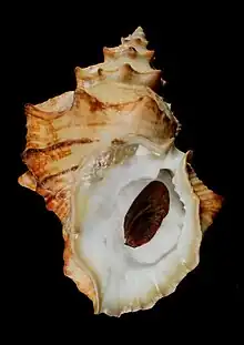 Apertural view Crossata ventricosa (Broderip, 1833) with operculum.