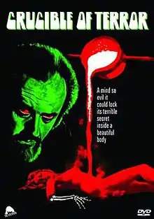 Crucible of Terror is a 1971 British horror film and directed by Ted Hooker and starring Mike Raven, Mary Maude and James Bolam.[2] Its plot centres on a reclusive artist in Cornwall. Besides painting young women, he has encased the living body of one in plaster and poured into it, through an eyehole, molten bronze, which killed her, made a cast of her body and turned it into a beautiful sculpture. After the bronze sells at a good price, he finds a 'suitable' second woman and attempts to do the same. But before he can, he meets a grisly demise at the hands of the first woman, a member of a 'weird sect', whose spirit has possessed the body of the second woman.
