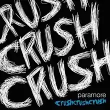 "Crushcrushcrush" (stylized in all lowercase) is a song by American rock band Paramore, and is the third single from the group's second studio album, Riot!. The official music video premiered on TRL on October 16, 2007. The single was released in late 2007. It was made available in the United Kingdom for download from November 5 and purchase on November 26, 2007. The single is also playable on various music video games such as Rock Band,[5] Rock Band Unplugged, Guitar Hero On Tour: Decades, and Ultimate Band. The single won a Teen Choice Award for "Choice Rock Track". It was also used briefly in NCIS, in the episode "Stakeout". On March 24, 2016, the song was certified Platinum in the United States for selling over 1,000,000 copies.