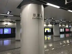 Cuipingshan station (Chinese: 翠屏山站), is a station of Line S1 of the Nanjing Metro. It started operations on 1 July 2014.[1]
